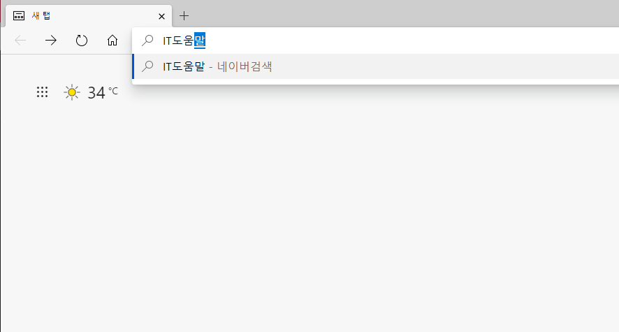 이제 설정을 닫고, 엣지 브라우저 주소표시줄에 검색할 내용을 입력하면 네이버 검색이라고 뜨는 것을 확인할 수 있습니다. 네이버로 들어가서 검색하지 않아도 되기 때문에 많이 편리합니다.