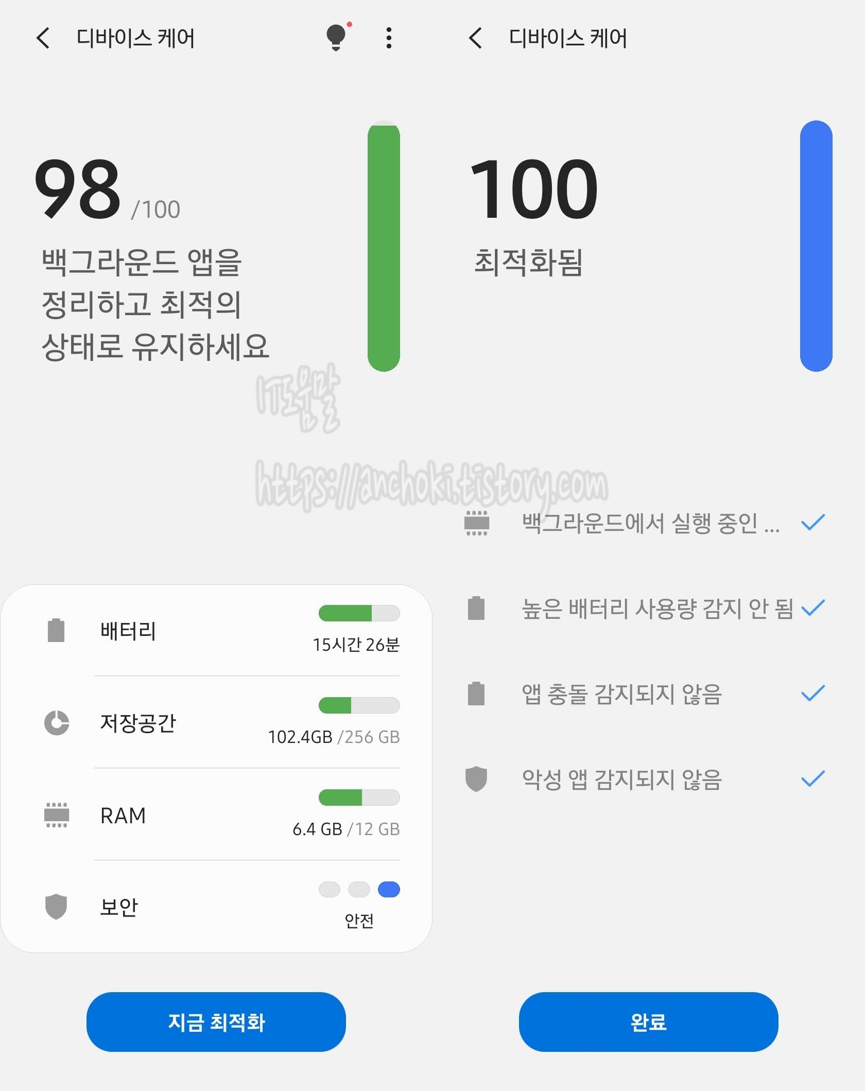 갤럭시 스마트폰은 디바이스 케어 기능을 통해서 자동으로 캐시 삭제가 가능합니다. 간단하게 앱 캐시를 삭제할 수 있지만, 수동으로 삭제하는 것보다 비효율적입니다.