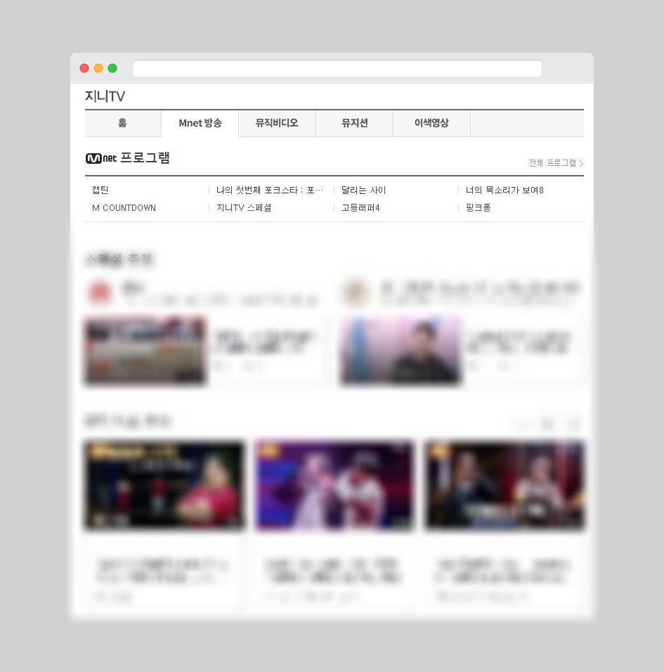 참고로 mnet은 공식 홈페이지가 없습니다. 지니뮤직과 합병으로 지니TV에서 Mnet 방송 프로그램의 클립 영상들 위주로 모아놓은 서비스가 있습니다.