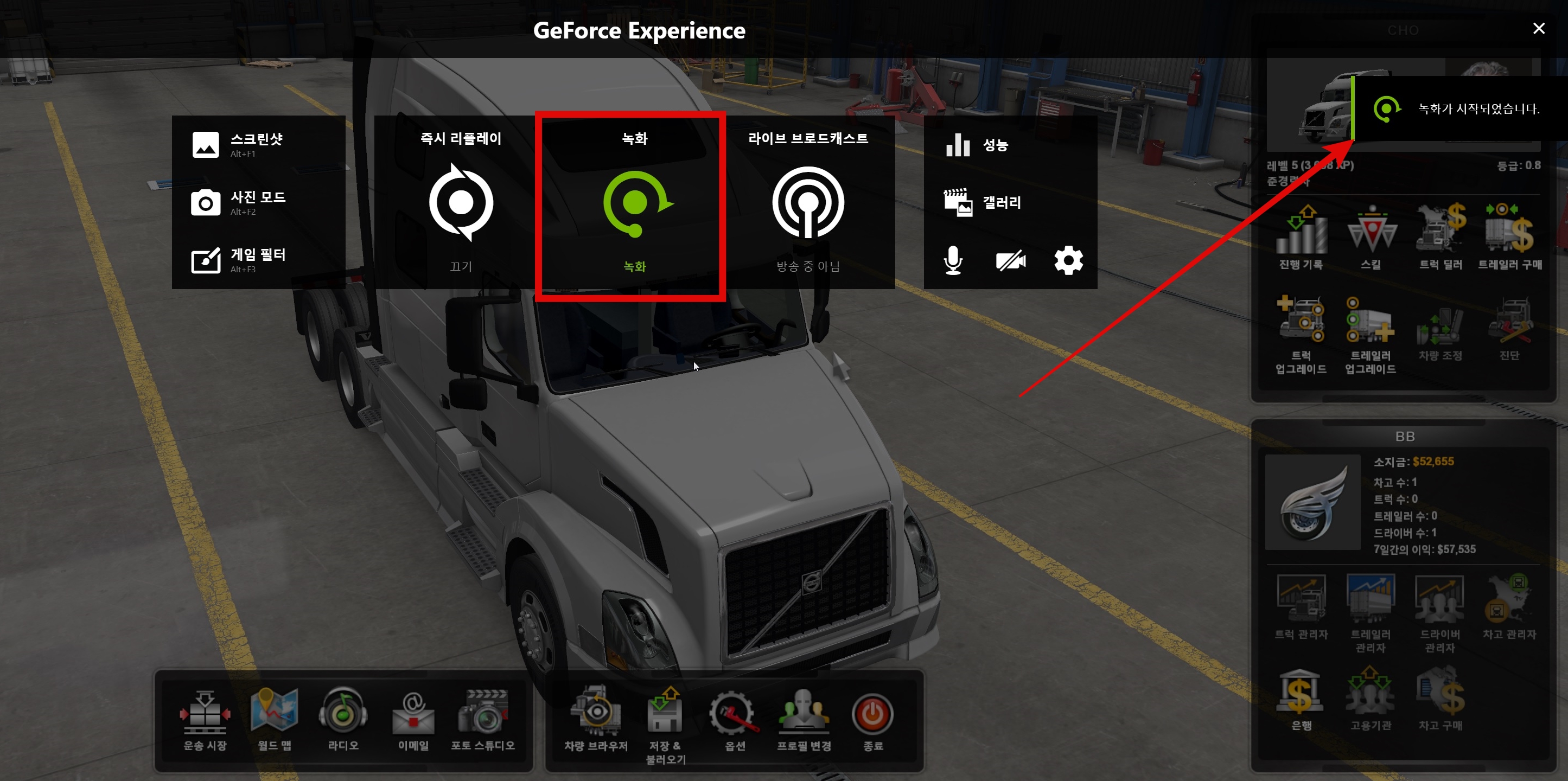 게임녹화가 시작되면 화면 오른쪽에 녹화가 시작되었다는 팝업이 떴다가 사라집니다.