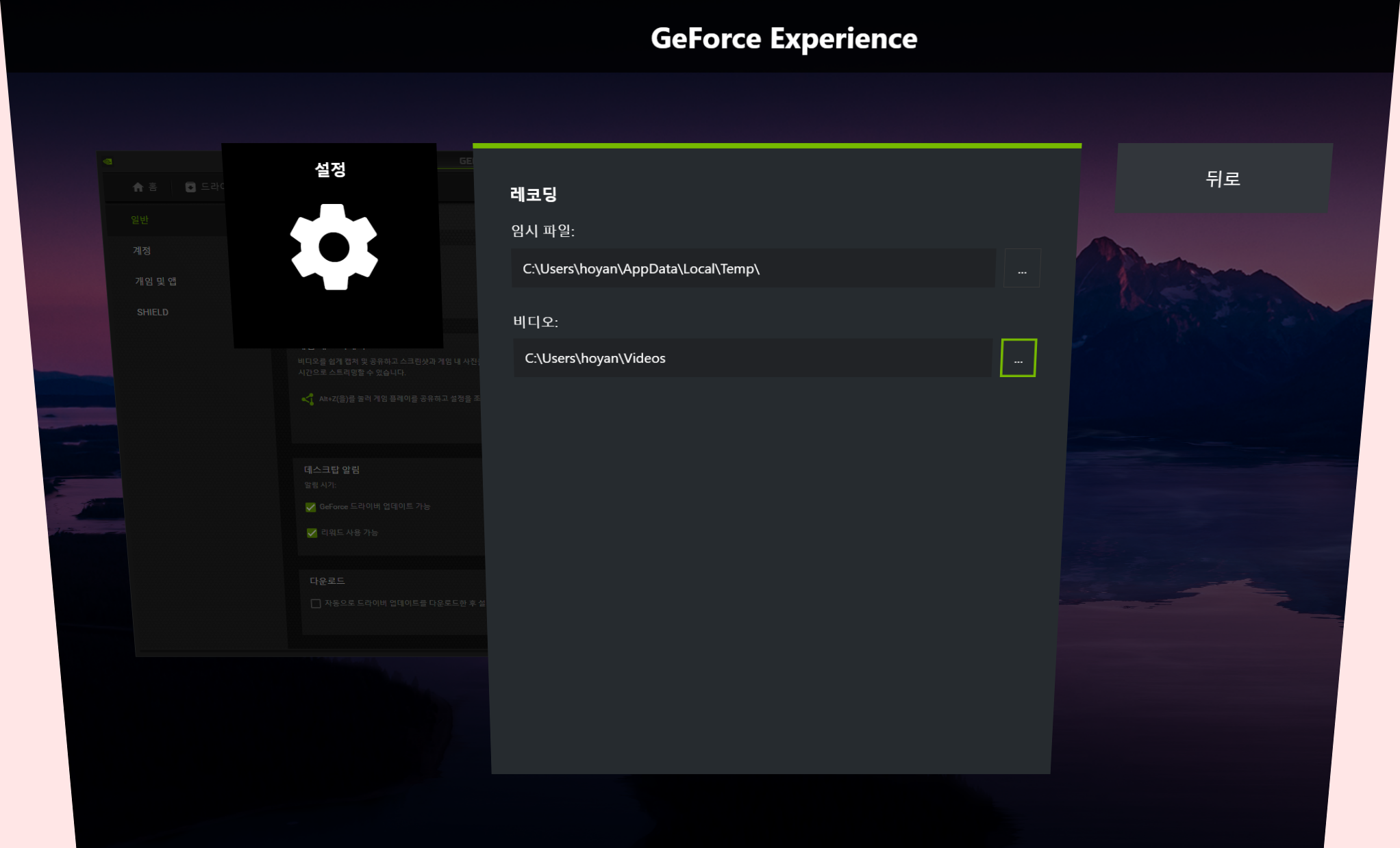 지포스 익스피리언스 녹화 방법을 위한 설정부터 시작합니다.