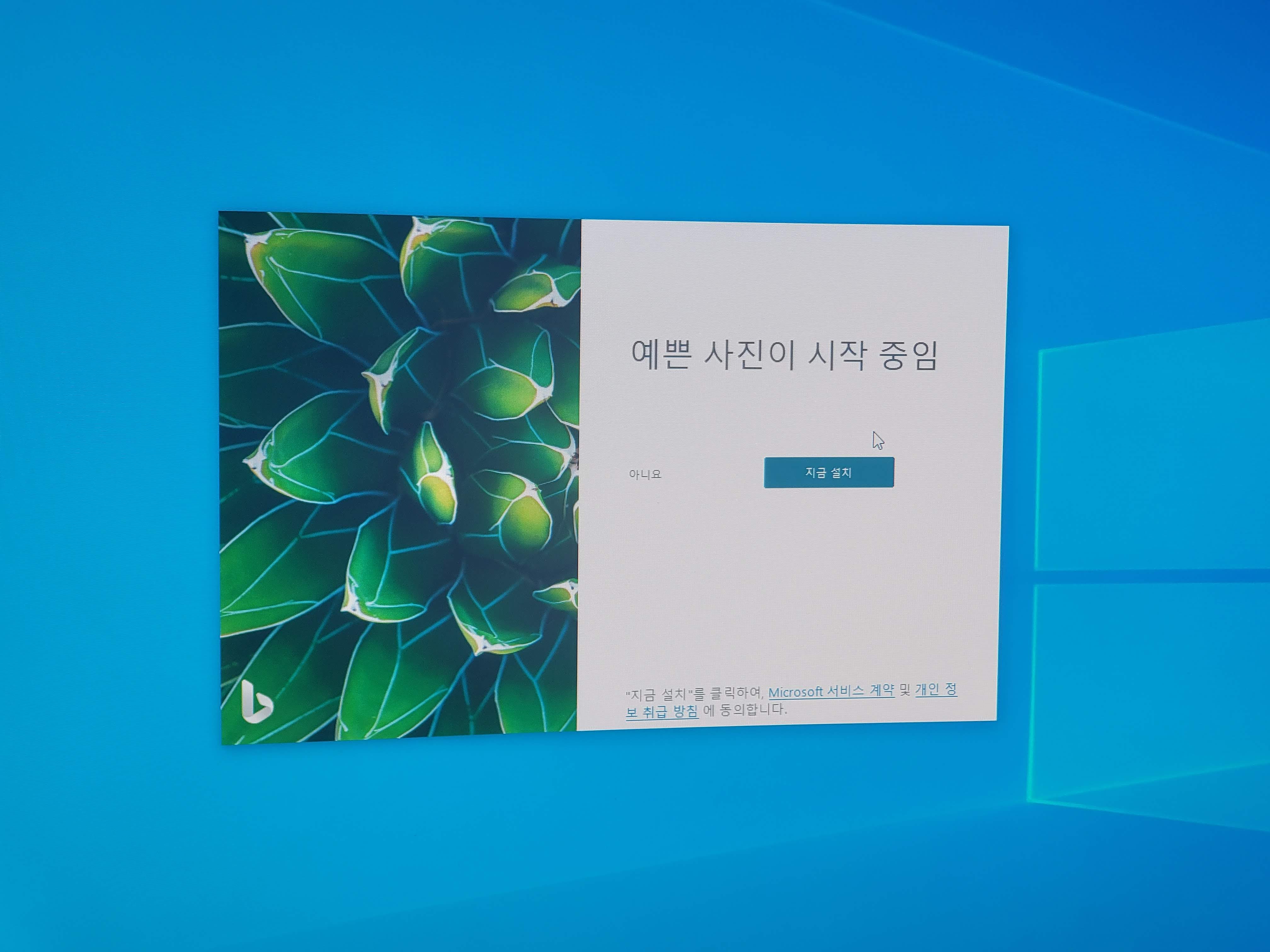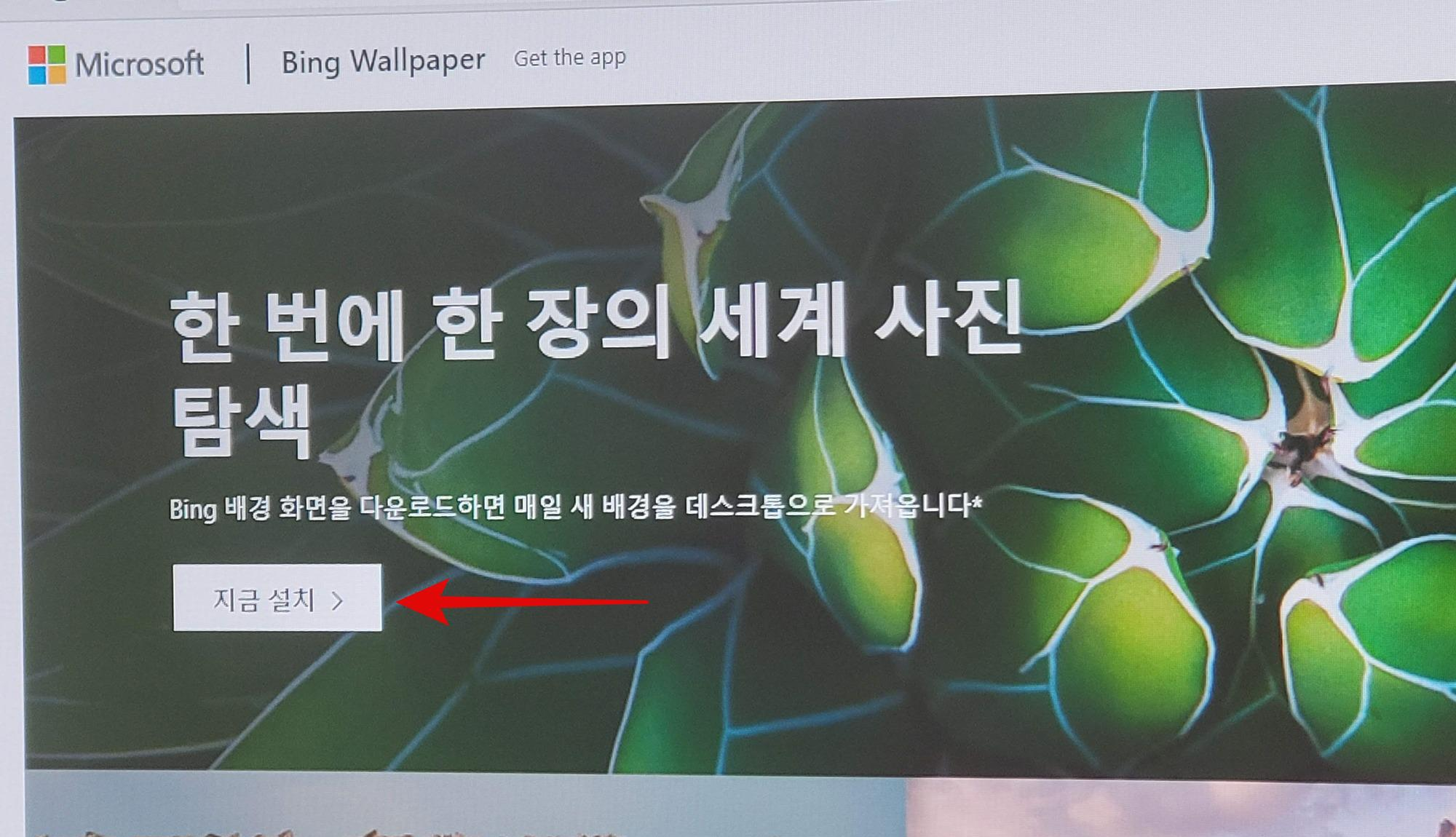 지금 설치 버튼을 누르면 Bing Wallpaper 설치파일을 받을 수 있습니다. 덧붙이면 마이크로소프트 스토어에 등록된 Bing Wallpaper Download 앱과는 다른 것이므로 사이트에서 직접 다운받을 필요가 있습니다. 그 앱은 사용자가 직접 배경화면을 설정할 필요가 있고, 마이크로소프트 공식 앱이 아닙니다.