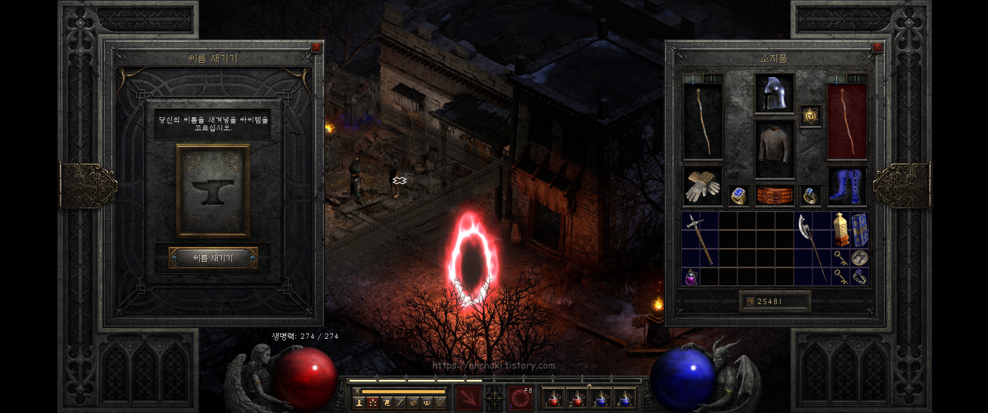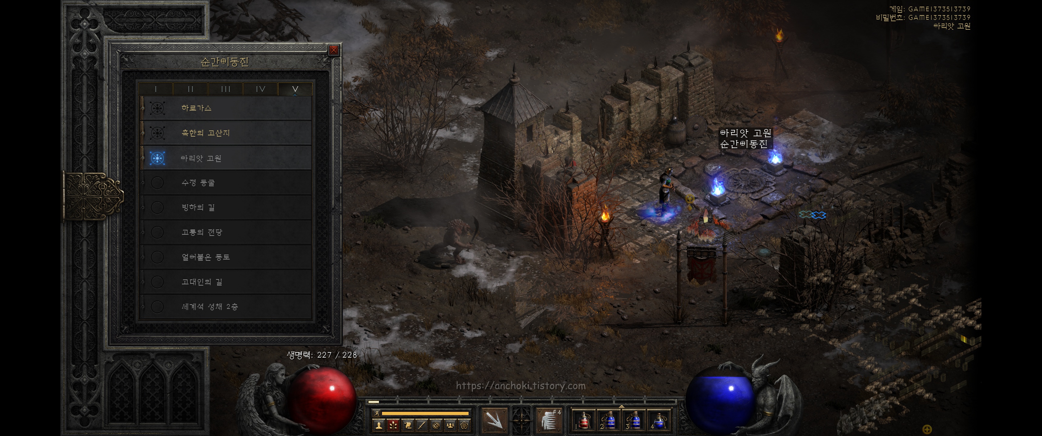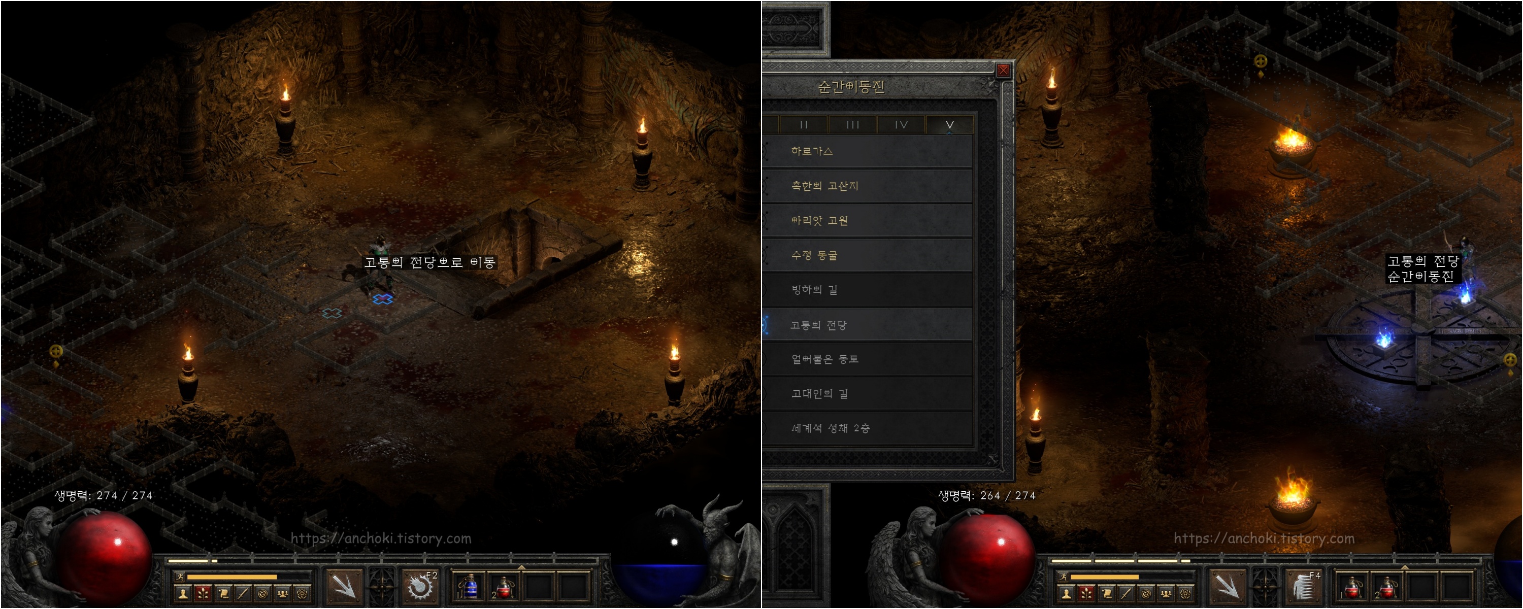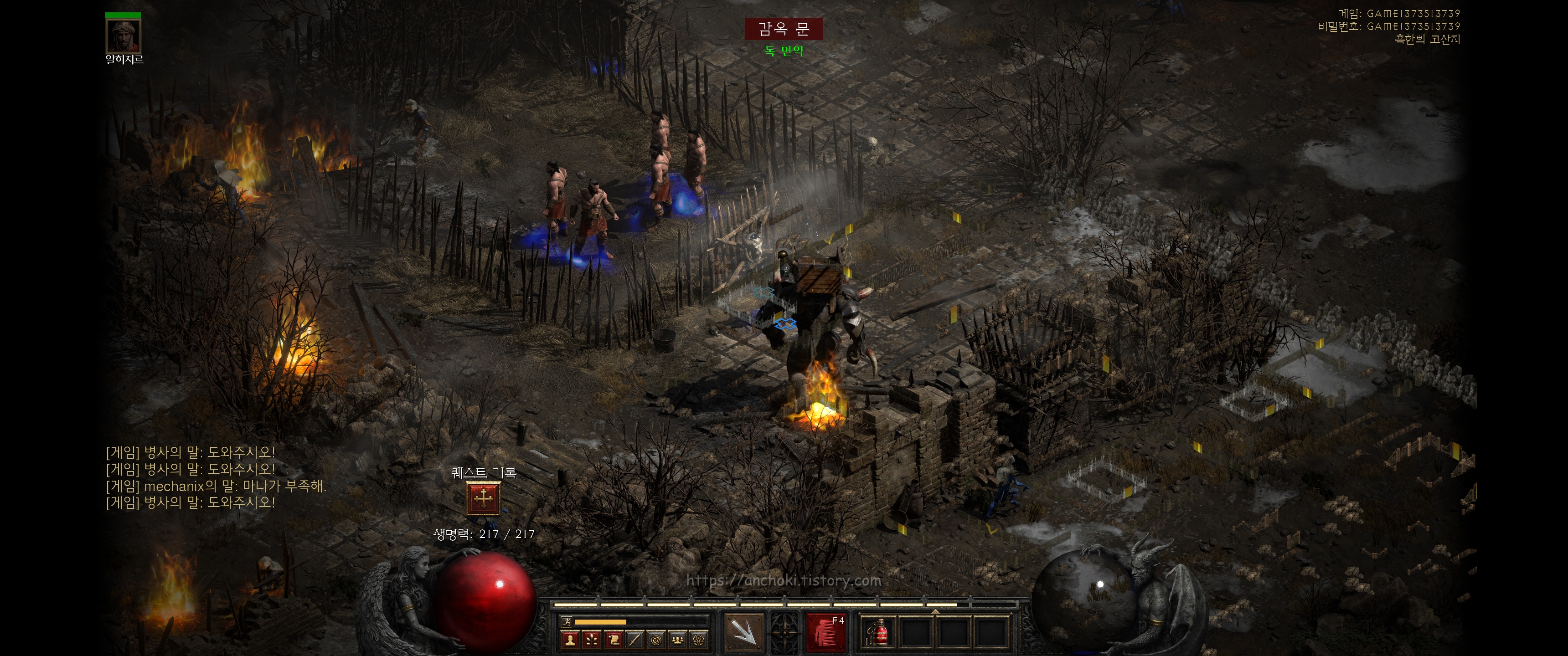 굳이 안해도 되는 퀘스트라서 핀들런만 하고 여기까진 안와도 상관없지만, 나중에 횃불퀘스트를 하실분들만 진행하면 됩니다. 참고로 디아블로2 레저렉션에서는 고통의 전당 (홀스 오브 페인) 웨이포인트를 찍어도 안야가 열어준 붉은 포탈은 그대로 있더군요. 계속 진행해도 핀들런 하는데는 상관없는 듯 합니다.