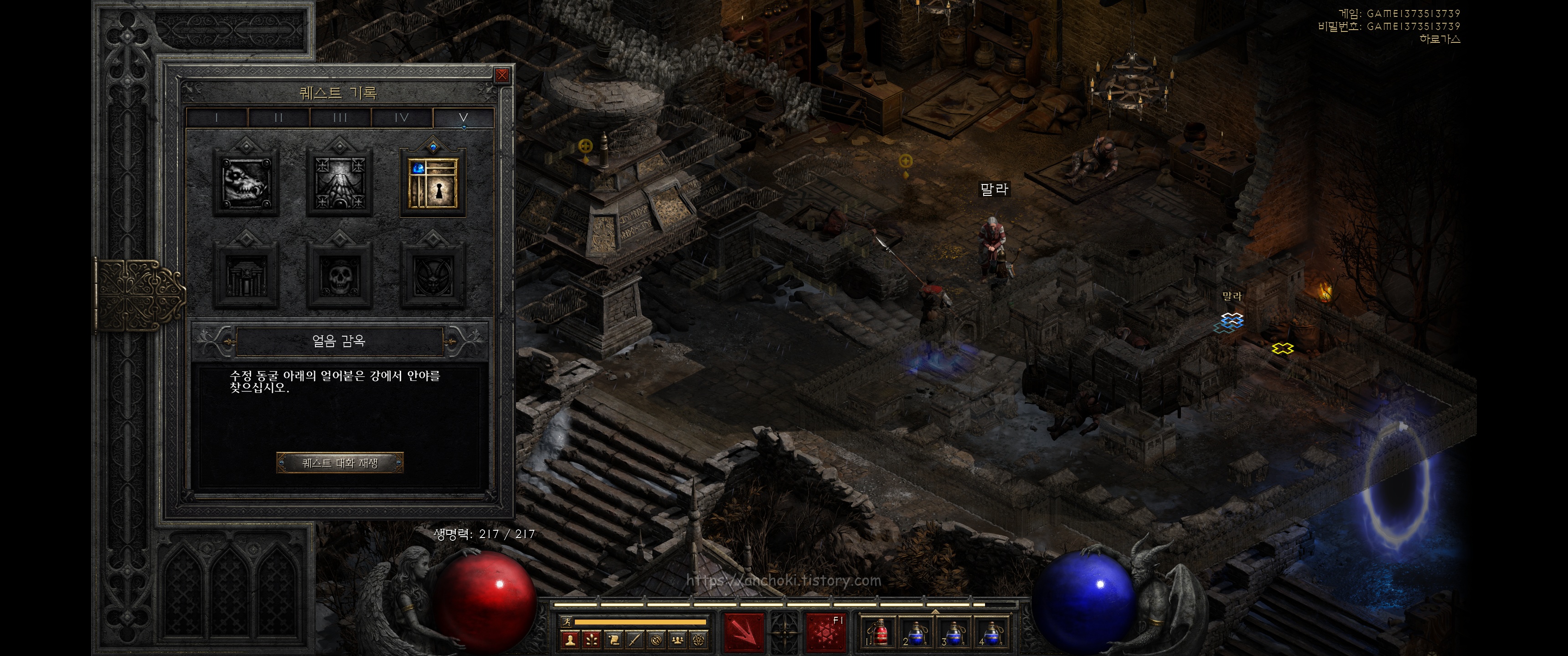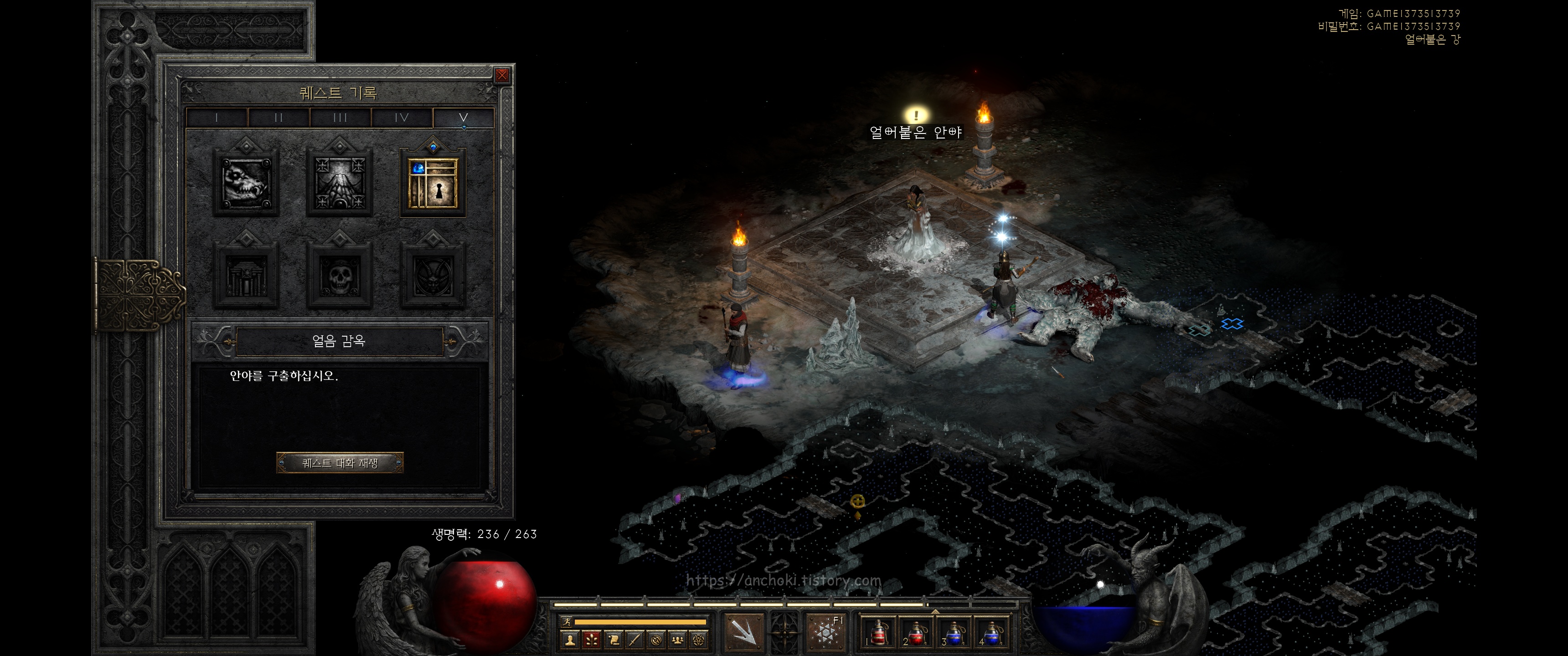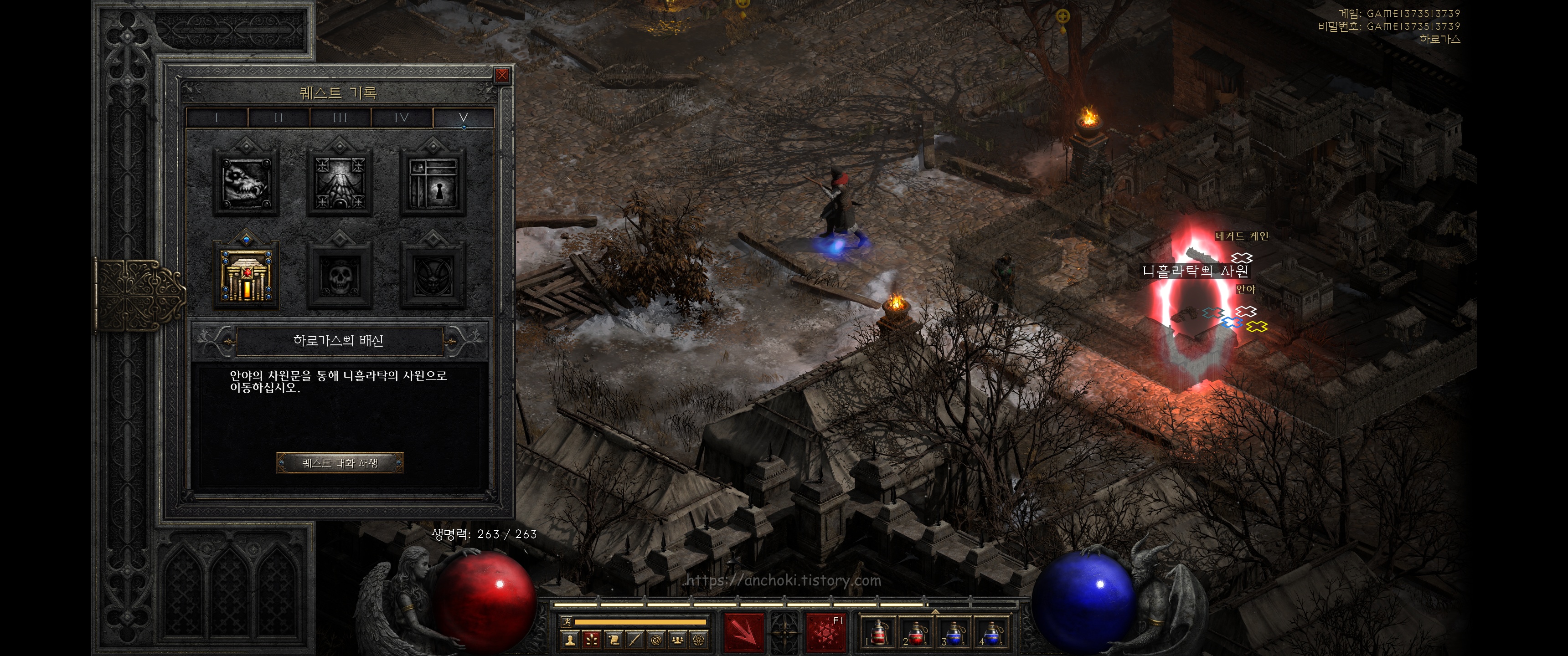 안야가 열어준 포탈을 타고 니흘라탁 사원으로 들어와 핀들스킨을 잡고 고뇌의 전당 (홀스 오브 앵귀쉬)으로 들어갑니다.