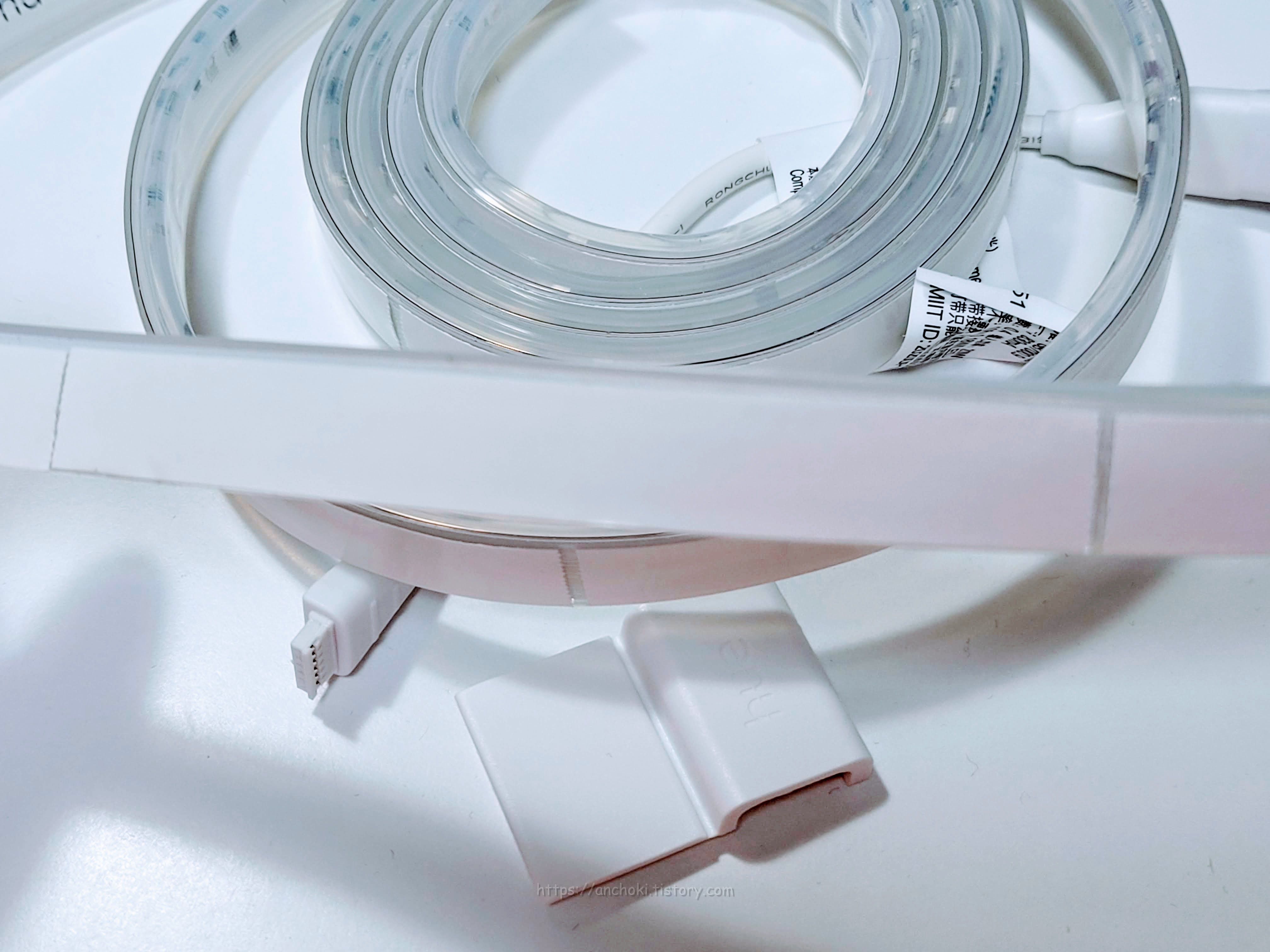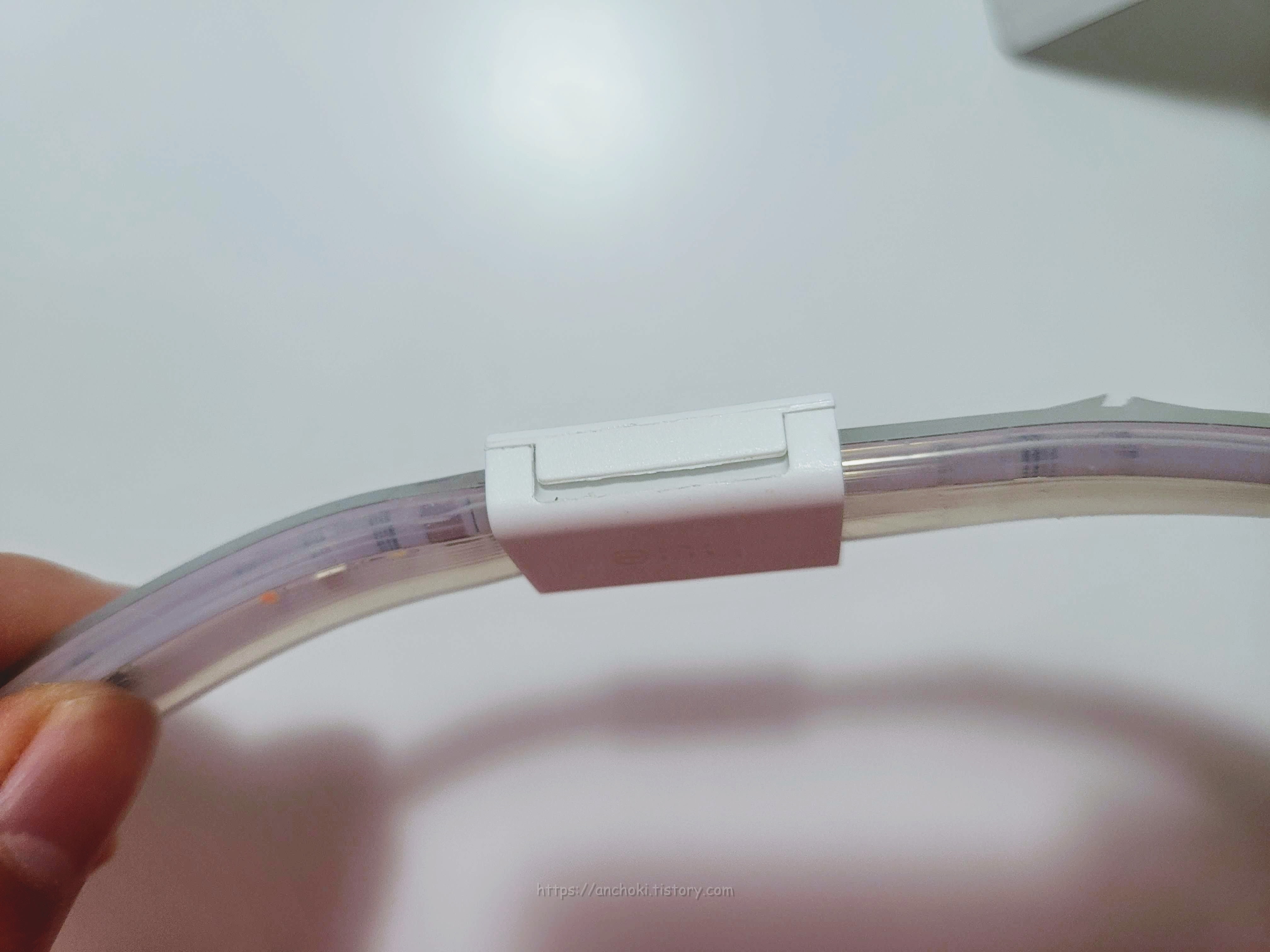 그리고 필립스 휴 라이트 스트립을 자를 때 주의할 것은 필요없는 여분을 자를 때는 커넥터 반대방향 (아무것도 없는 쪽)의 끝쪽을 잘라야된다는 것입니다. 커넥터가 있는쪽을 자르면 굉장히 난감한 상황이 발생하게 됩니다. 왜냐하면 실제로 빛이 들어오는 쪽을 잘라버린거니까요.
