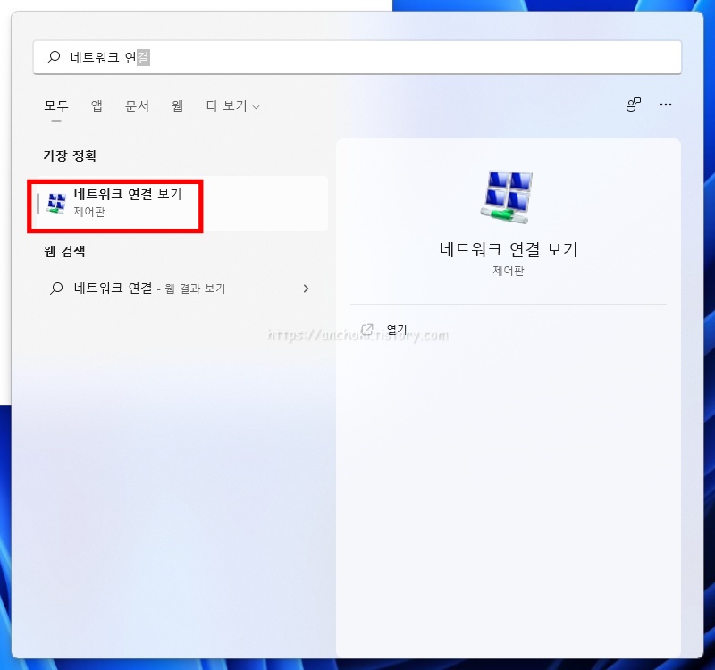 이번에는 설정이 아닌 제어판에서 DNS를 바꾸는 방법이며 이전부터 사용하던 방식입니다. 네트워크 연결 보기를 실행시킵니다.
