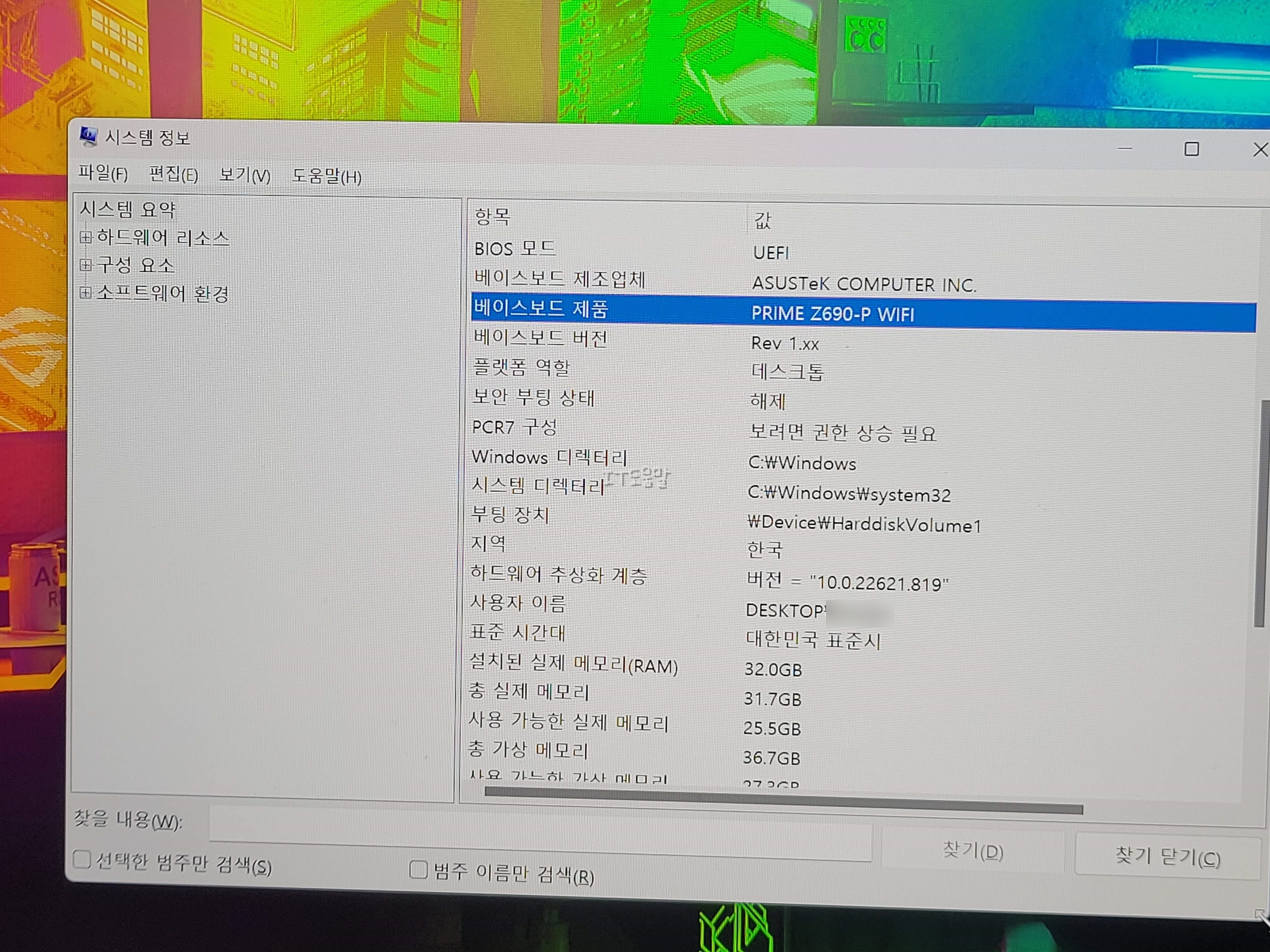 메인보드 제조사 모델명 확인
