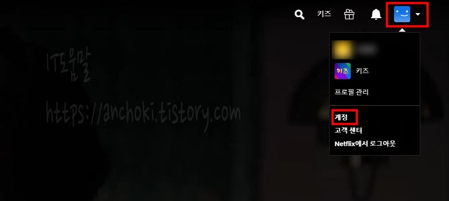 1. 오른쪽 상단 프로필을 클릭해서, 계정을 선택합니다.