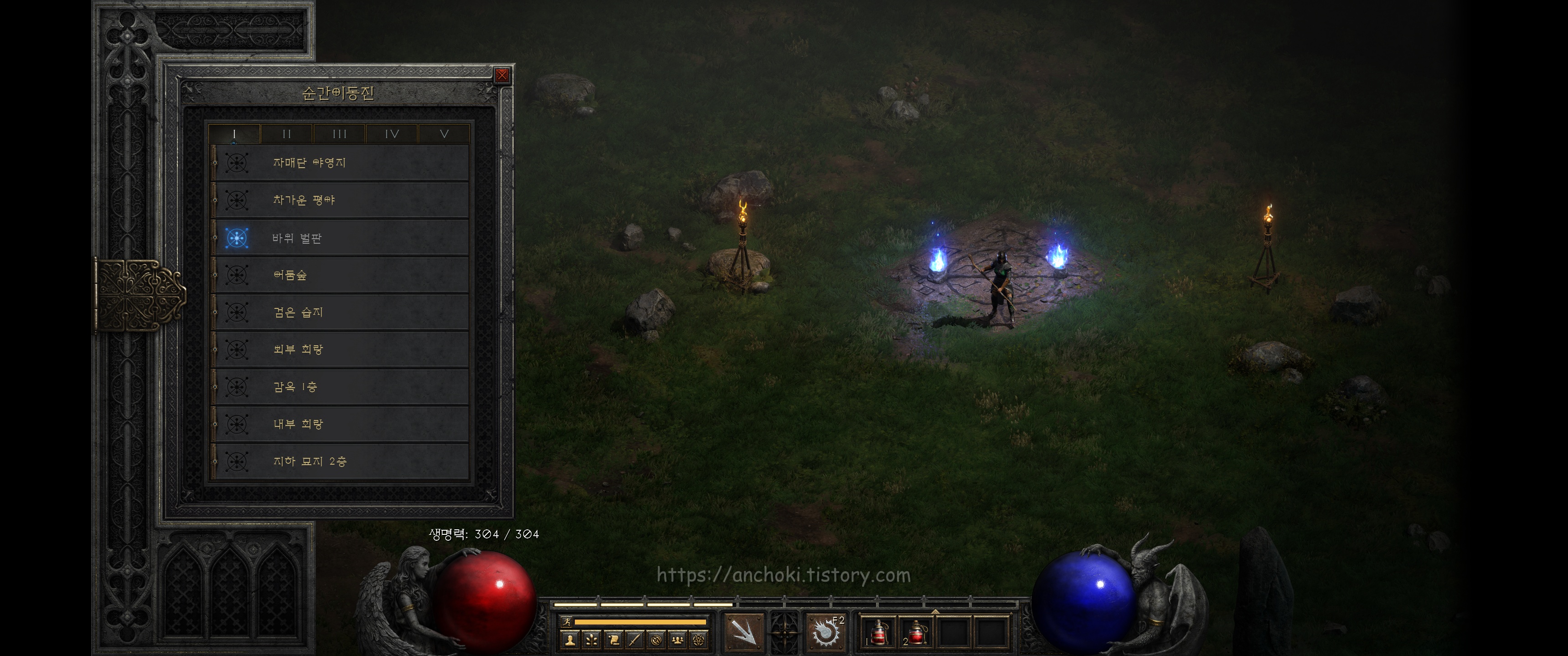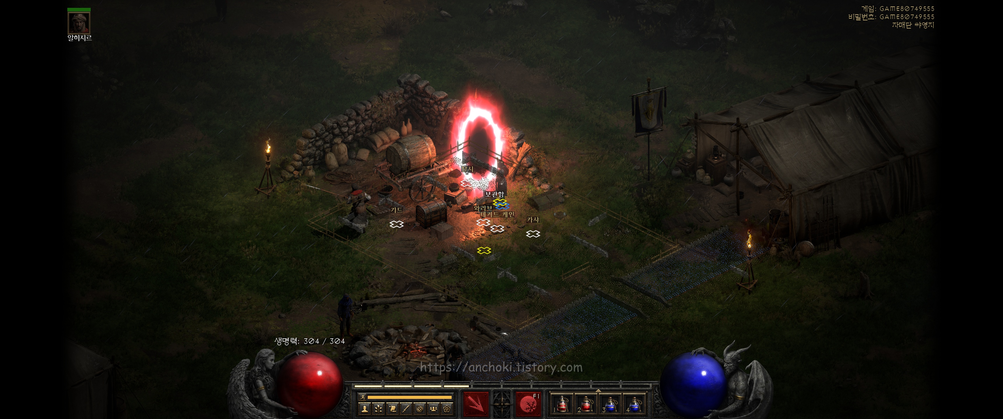 우선 액트1의 바위벌판 (스토니필드) 웨이포인트로 가서 필드의 돌기둥에 있는 붉은 포탈을 타고 트리스트럼으로 갑니다. 데커드 케인을 구출하기 위해 갔던곳이죠.